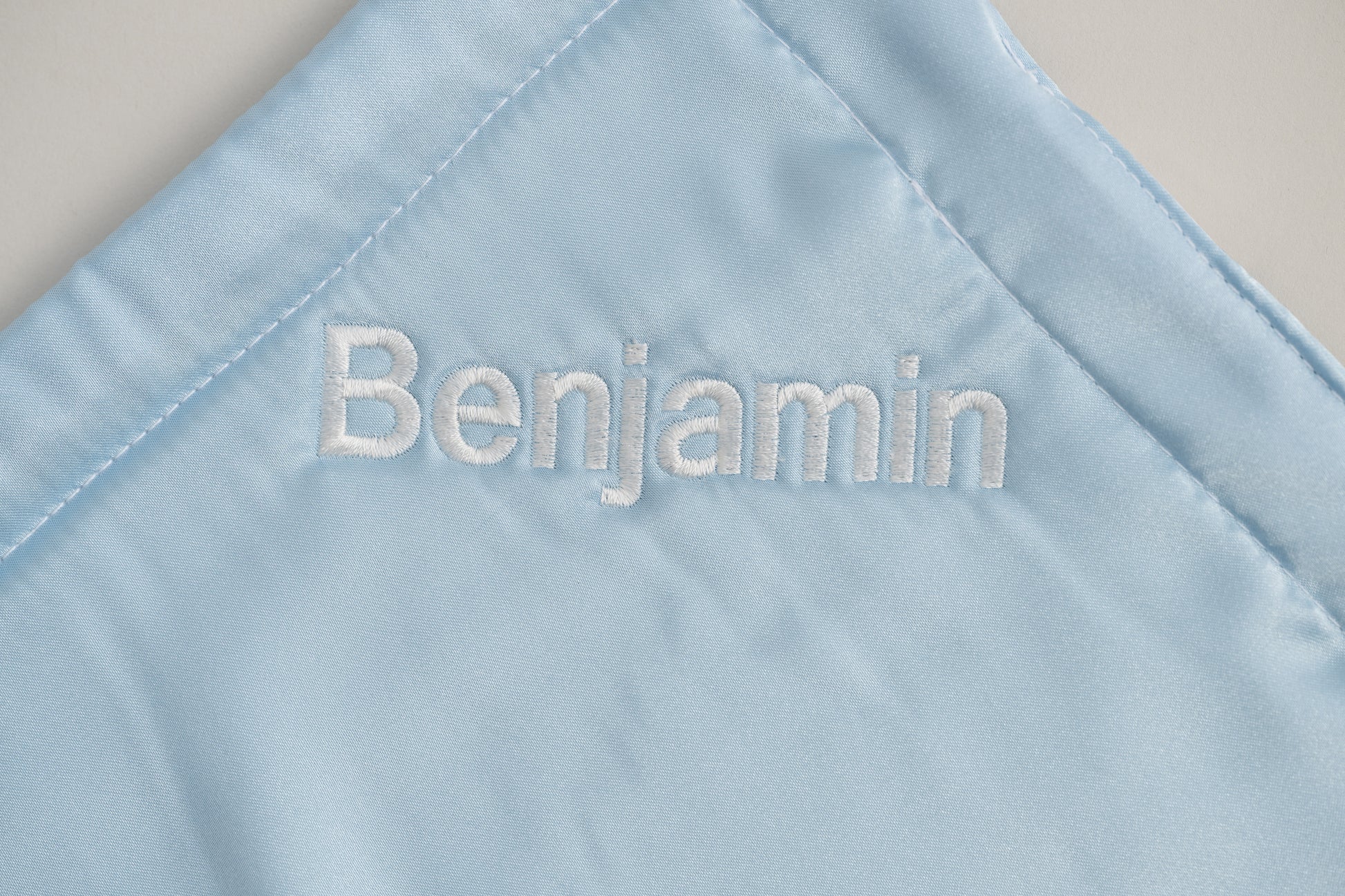 Our All Silkie Toddler Blanket takes the beloved silky feel to a larger size. Perfect for naps, bedtime, and cozying up anywhere. Made with charmeuse satin on both sides, it’s luxuriously soft yet warm, making it a favorite for years to come. American made. Our customized and personalized blankets are a perfect gift for children!